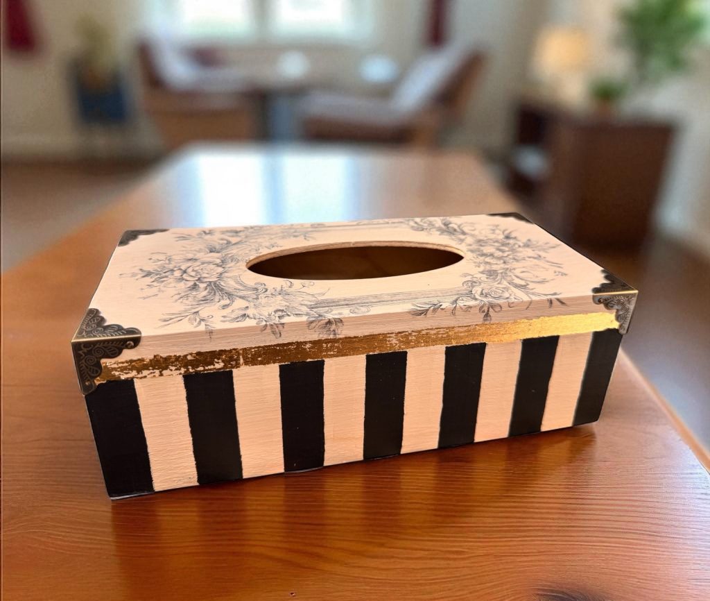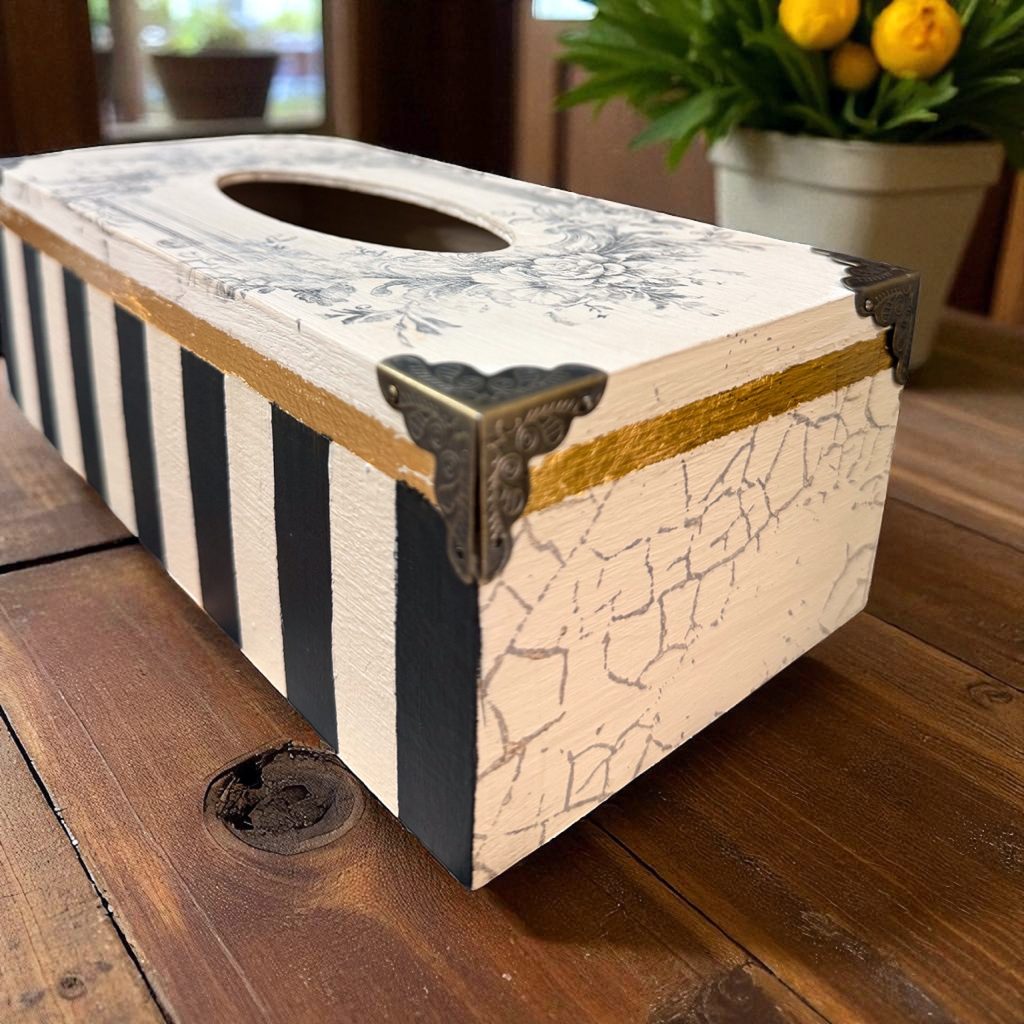 En este taller aprenderás varias técnicas decorativas aplicadas a un objeto útil para el día a día: una caja de pañuelos personalizada.