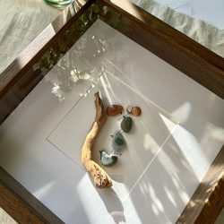 Cada obra es un viaje: fragmentos recogidos en diferentes rincones del mundo se unen mediante la creatividad, el color y la textura, dando vida a piezas que invitan a detenerse, contemplar y redescubrir la fuerza de lo natural.