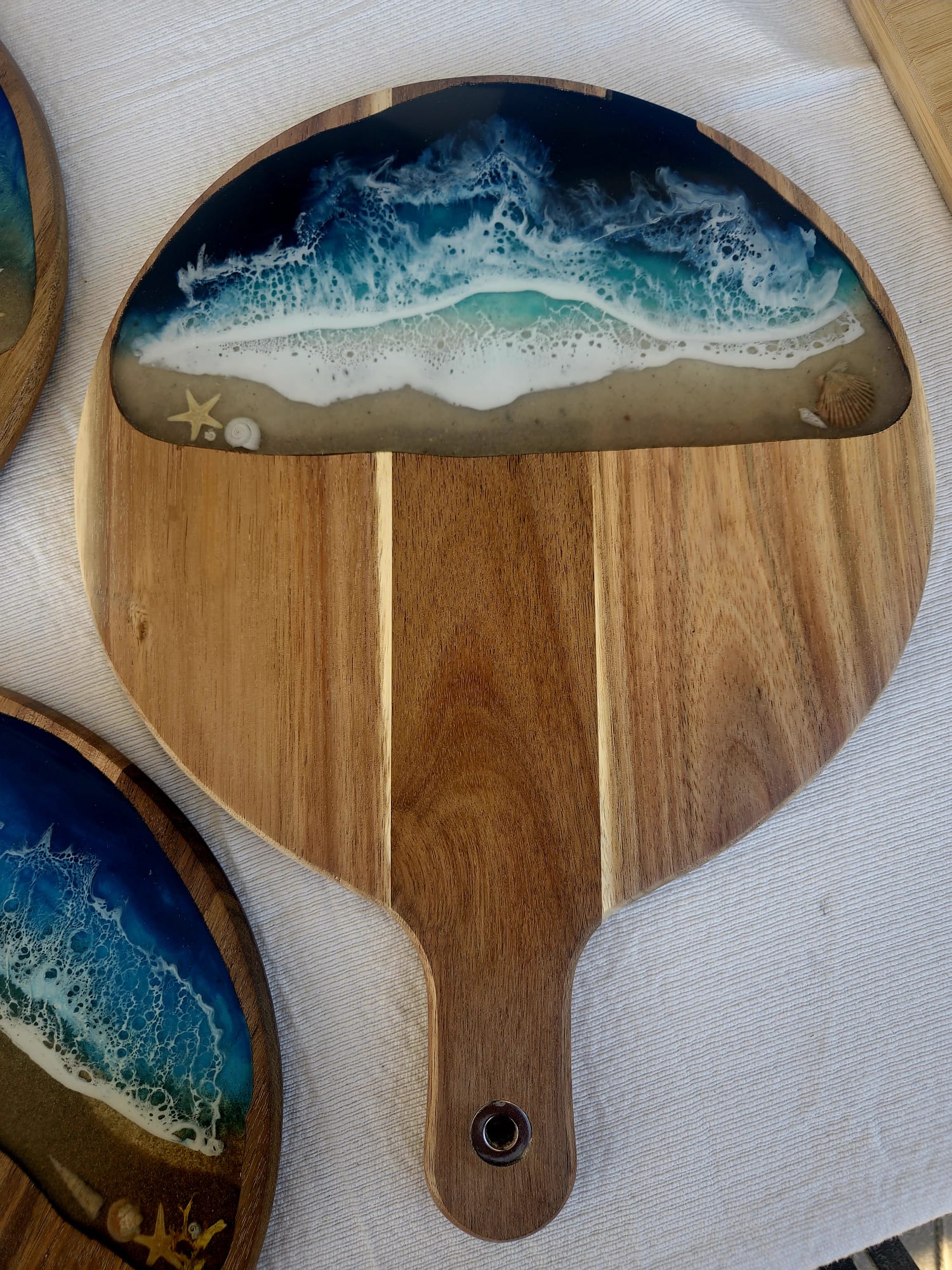 Además de sus cuadros, Herbec Art diseña lámparas, tablas de cocina y pequeñas joyas, objetos artesanales que llevan la esencia del mar y de la tierra a la vida cotidiana. Cada creación es un recordatorio de nuestra conexión con el planeta y de la importancia de cuidarlo.
