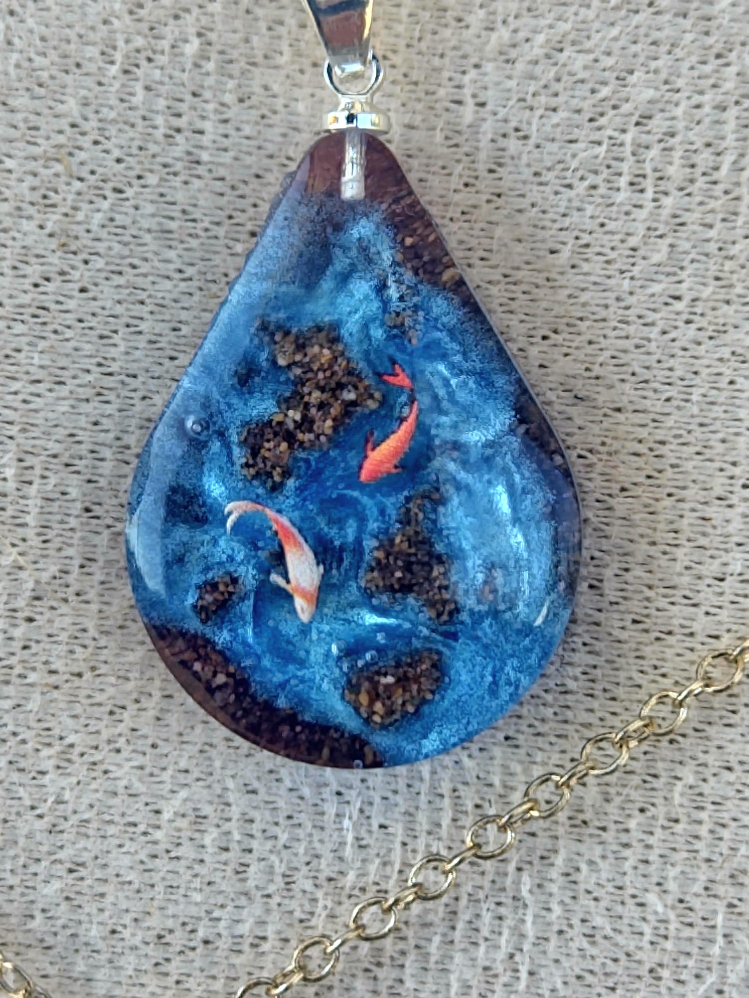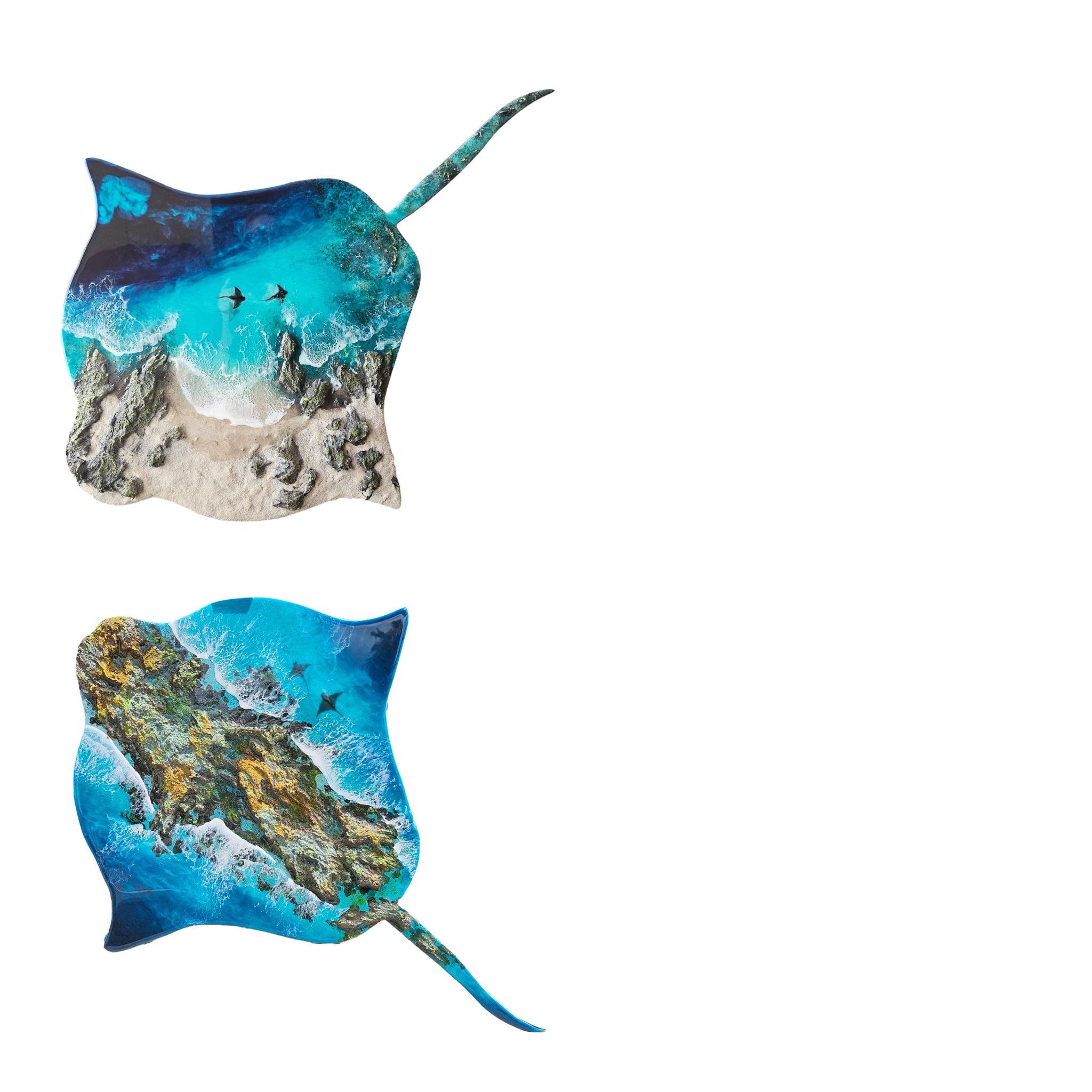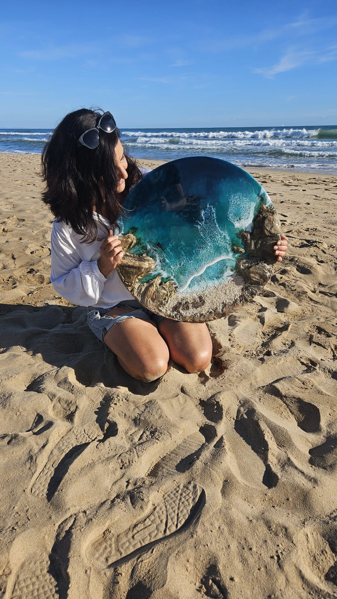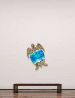 El proceso creativo une la resina con materiales naturales —arena, cortezas, rocas, algas o flores— para dar vida a piezas que parecen respirar y cambiar con la luz. Así nacen obras únicas que transmiten energía, serenidad y un vínculo profundo con el entorno.