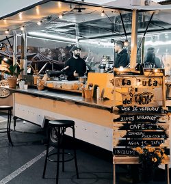 Además, ofrecemos gyosas con la opción de acompañarlas con arroz blanco, bebidas calientes como café —en distintas variedades y con leche de vaca o de avena—, así como zumos naturales recién hechos de frutas combinadas y una selección de refrescos y cócteles sin alcohol.