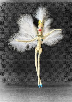Sus obras están elaboradas con tela, fieltro y porcelana fría, materiales que le permiten dar forma a personajes únicos, cargados de expresión y sensibilidad. Cada muñeca refleja un universo interior particular, invitando al espectador a sumergirse en su mundo poético y melancólico.